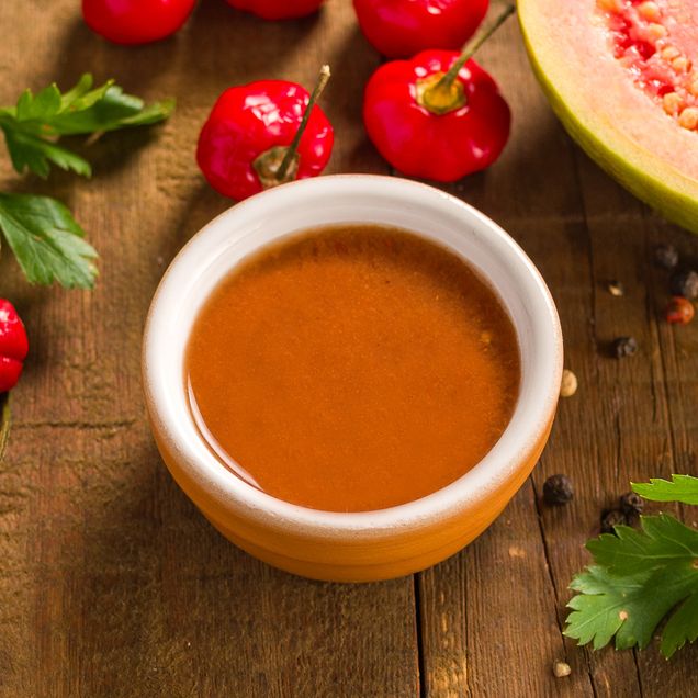 A doçura da goiaba suaviza a picancia da pimenta de bode, queridinha da culinária goiana. Natural e orgânico. Sem conservantes e sem alergênicos. Vegano. A pimenta de Bode é a pimenta do Centro-Oeste. Muito utilizada na culinária goiana, tem aroma forte e é bem picante, apesar de pequenina (mede cerca de 1 centímetro de diâmetro).