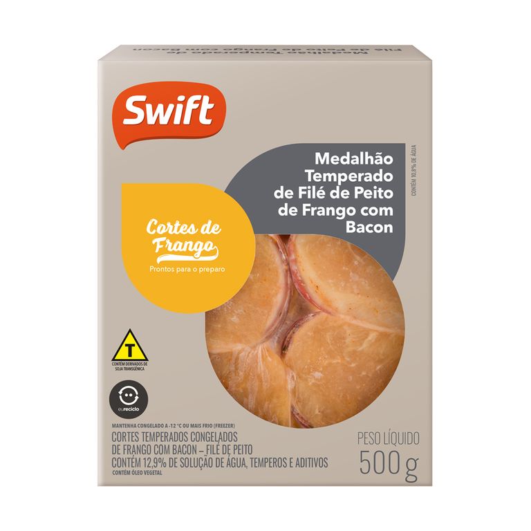 6 sofisticados medalhões do mais macio filé de peito de frango, temperado com alho, páprica picante, cebola e pimenta preta, envolvido por uma deliciosa fatia de bacon. Prontinhos para preparar com muito sabor e praticidade!