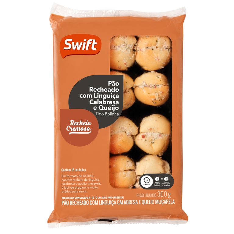 Preparado com ingredientes de muita qualidade, o Pão de Calabresa com Queijo Swift possui um saboroso recheio de linguiça calabresa combinada com queijo mussarela e requeijão cremoso. É fácil de preparar e muito prático para servir e fica uma delícia assado na churrasqueira, no forno ou na Air Fryer.