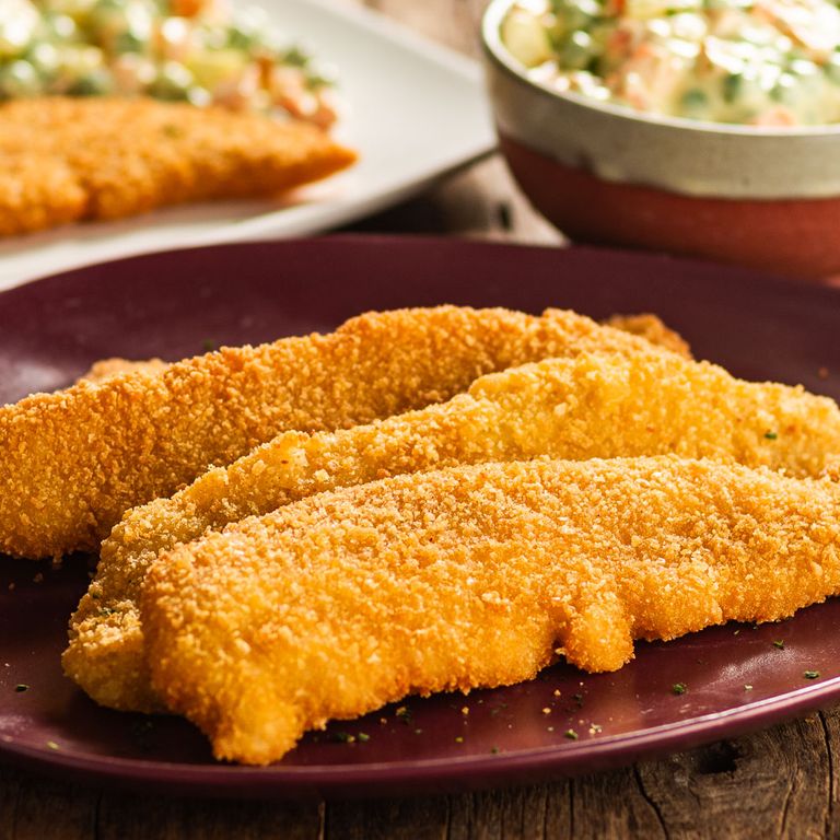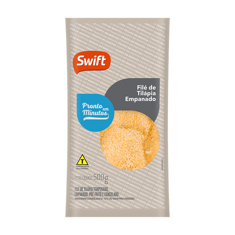 A Tilápia é um pescado que possui carne branca e magra, sabor leve e textura suave. Os Filés de Tilápia empanados Swift são filés íntegros, com tamanho ideal para compor uma refeição que fica pronta em minutos, pois já são temperados, empanados em uma combinação de farinha de trigo e farinha de milho, sem adição de glutamato monossódico e pré-fritos, além de congelados individualmente, para que você possa preparar a quantidade que deseja sem precisar descongelar todo o pacote.